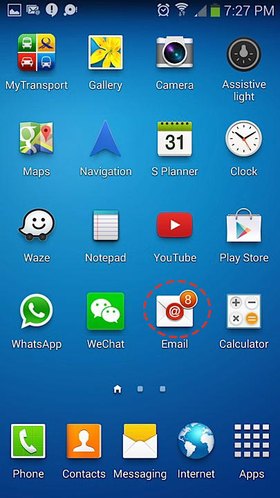 Kini anda boleh menyemak mel anda pada Aplikasi E-mel.