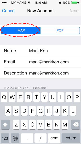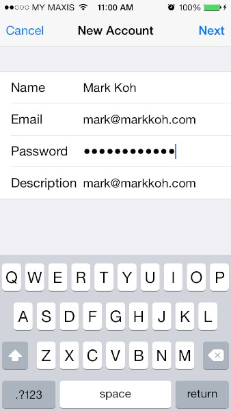 - 填写姓名、电子邮件、密码和描述(邮件账户的描述性名称,例如:我的邮件)