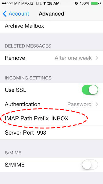 - 在 IMAP 路径前缀中输入 INBOX(不含引号)